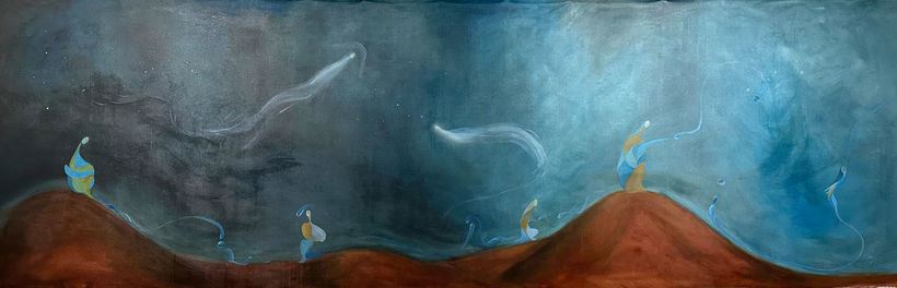 Travelers follows Faceless as a natural continuation, where form no longer holds weight or boundaries. The figures are now spectral — fragments of memory, immaterial presences moving through undefined space. This series marks a further detachment:what once was figure becomes essence, motion, spirit.